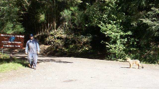 Sandrita & Esteban pose by the great crossroad sign. Take a closer look at the Pto. Frias, our turning around point on this trip, is 4 millas (miles) further, and that much closer to the border. Notice the flag colors to the right of the names on the signs indicating that the city or port is in Argentina or Chile.