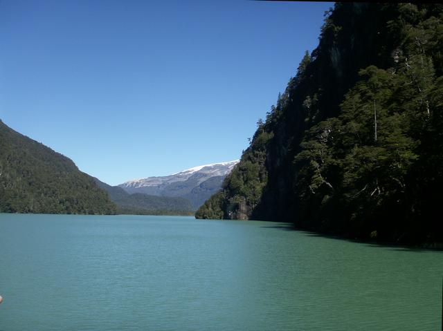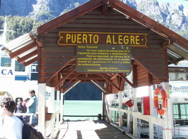 The buses returned after a long wait, so we lined up and got on board to see where they would take us. Sandrita understood, but I was overwhelmed. The short bus trip took us to Puerto Alegre to embark on the next leg of the lake crossings over Lago Frias. The colors of the glacial waters are amazing, and vary from lakelet to lakelet. After rounding one of the mountain promontories the great Mount Tronador comes into view again, and we pass the famous "wall of echoes" where everyone makes a distinguishing shout to make sure it still works. This trip is not long and we arrive at Puerto Frias, the last stop westward in our excursion, and the location of the Argentine Customs office for those continuing on into Chile.