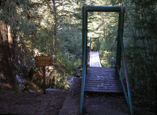 We walked, and we walked; into the Valdivian forest. This region has its own unique micro climate due to the location in the mountains. It was late summertime, but it was cold in the shadows, and I was glad I'd bought the winter coat and warm hat in Bariloche. Yet it was still so moist in the forest the I started to sweat from the labor of much walking, oh yes, uphill. The trek was difficult in some parts, but much of the way there was a walkway constructed of wood - a boardwalk! It seemed to go on forever. Sometimes the slope was gentle, sometimes steep. When it became too steep there were stairways, long climbing stairways. Whew...what had I gotten myself into this time? I didn't have any idea how much further ahead remained, and it was now a heck of a long way back. I heartened myself by thinking that at least the return would be downhill.