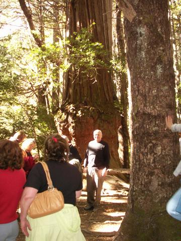 Fitzroya Cupressoide the millennial larch tree. Everyone poses by the big tree, and a young lady asked me to take her picture, then she returned the favor by taking my photo in front of the tree