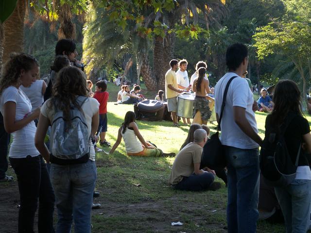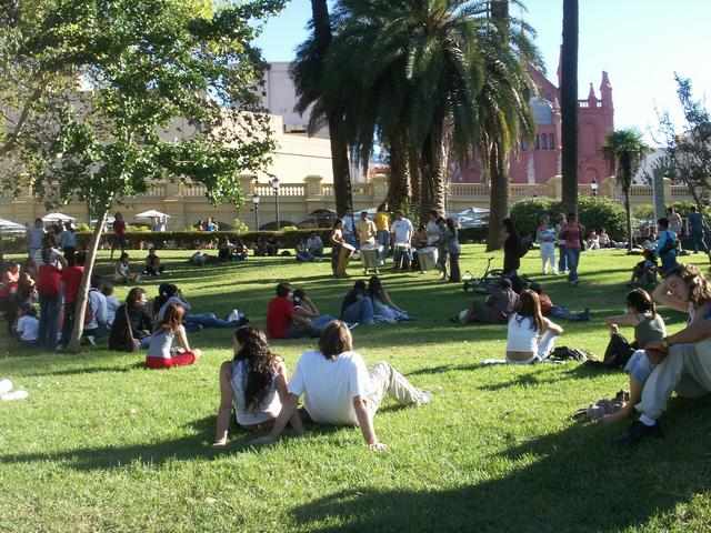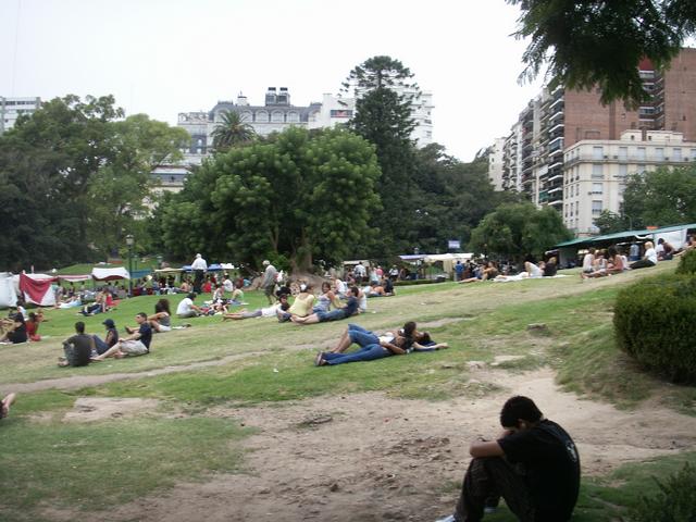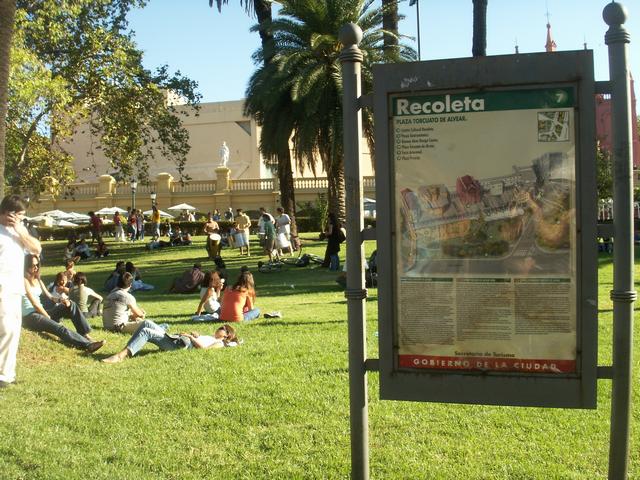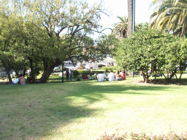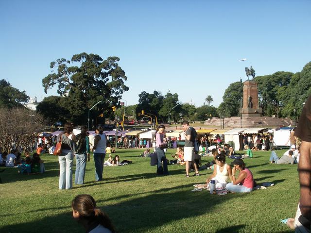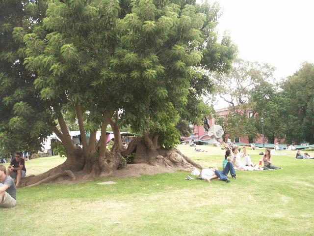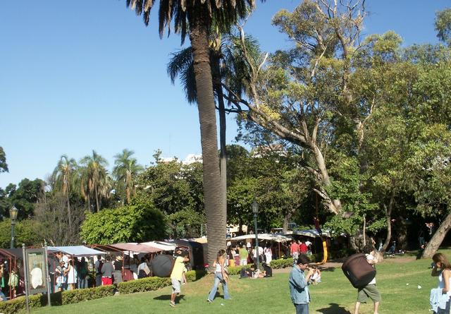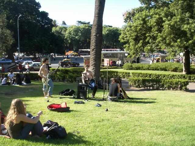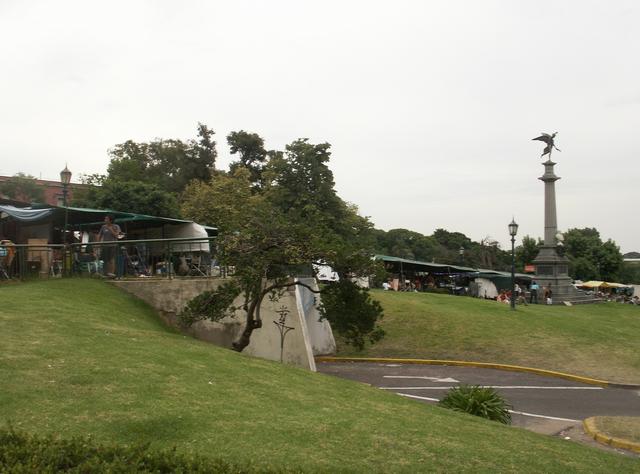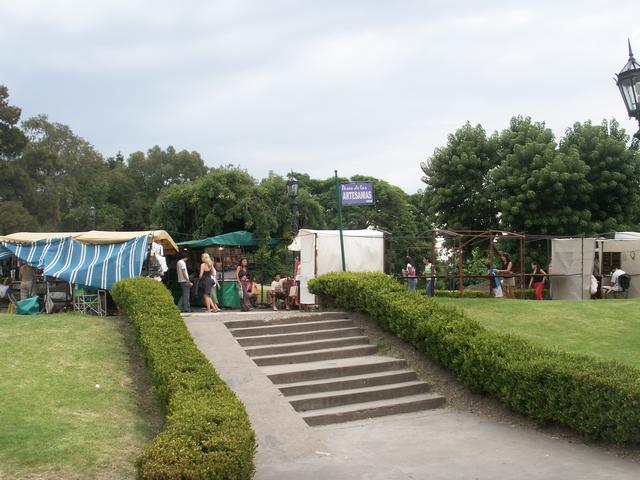 This is where I walked on a balmy Sunday afternoon in February 2007. I'd been through most of the arts and crafts fair, and flea market displays, passed other sidewalk entertainers shown herein, and approached two minstrels at the edge of the big tree. The younger of the two touted their CD, asking for a few pesos, and telling me that it contained nineteen songs. I struggled with the spanish, and he asked me how to say "nineteen songs" in English. They sang Lejana Terra Mia for me, and I frivolously recorded it on my little pocket camera while I sipped a Quilmes. It may or may not make you smile; it always makes me smile, but I am partial. If you can handle about 4MB, and have about two and a half minutes